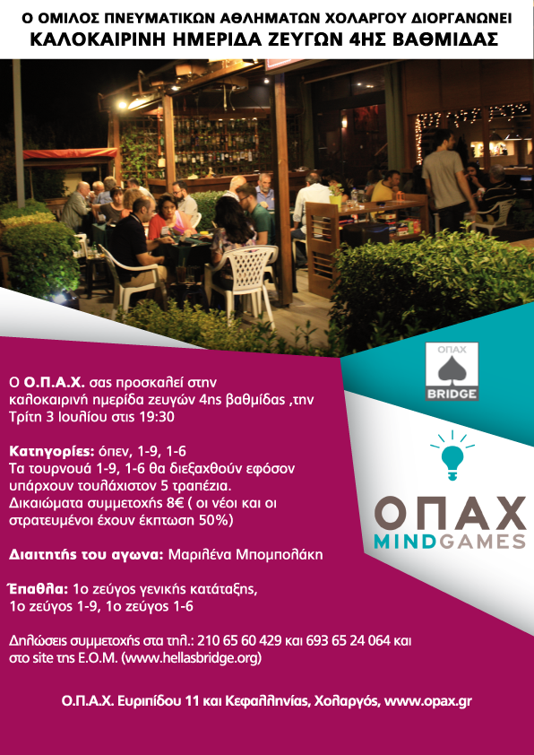 ΚΑΛΟΚΑΙΡΙΝΗ ΗΜΕΡΙΔΑ ΖΕΥΓΩΝ 4ης ΒΑΘΜΙΔΑΣ taks2018-10-10T19:52:53+03:00 Μοιραστείτε αυτό το άρθρο. FacebookX Related Posts 28o STANDARD TOURNAMENT Gallery 28o STANDARD TOURNAMENT 60th RAPID TOURNAMENT Gallery 60th RAPID TOURNAMENT ΚΡΟΥΑΖΙΕΡΑ BRIDGE ΣΤΗ ΜΕΣΟΓΕΙΟ (ΕΝΗΜΕΡΩΣΗ) Gallery ΚΡΟΥΑΖΙΕΡΑ BRIDGE ΣΤΗ ΜΕΣΟΓΕΙΟ (ΕΝΗΜΕΡΩΣΗ) 59th RAPID TOURNAMENT Gallery 59th RAPID TOURNAMENT