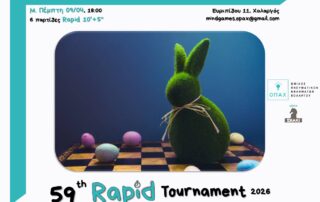 Ο Όμιλος Πνευματικών Αθλημάτων Χολαργού (Ο.Π.Α.Χ.), σας προσκαλεί στο 59ο Rapid Tournament, του Ο.Π.Α.Χ. - Mindgames, την Μ. Πέμπτη 09/04, 18:00