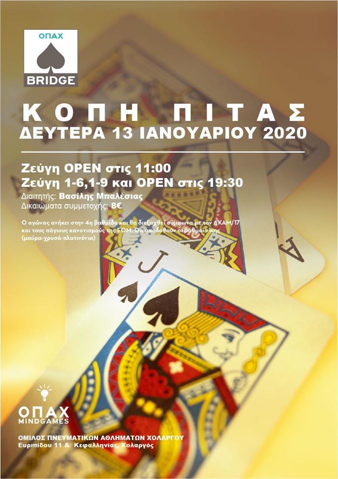 Ο Όμιλος Πνευματικών Αθλημάτων Χολαργού σας προσκαλεί στην κοπή της πρωτοχρονιάτικης πίτας, την Δευτέρα 13 Ιανουαρίου, που θα πραγματοποιηθεί στις εγκαταστάσεις του ομίλου.